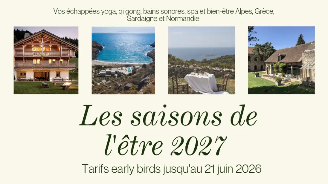 Pour le premier cycle des Saisons de l’être 2027 qui sera une seconde année placée sous le signe du feu, voici le programme qui vous est proposé pour apaiser le feu grâce à la présence de l’élément eau !